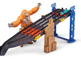 El set incluye: 1 Auto, 4 pistas de corrida (con 2 trampas de eliminación) y 1 gorila atacante.